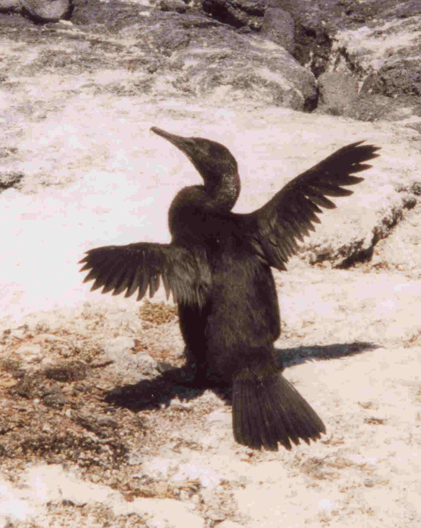 This is the only flightless cormorant in the world. Boat owners might approve. It only lives in the Galapagos.