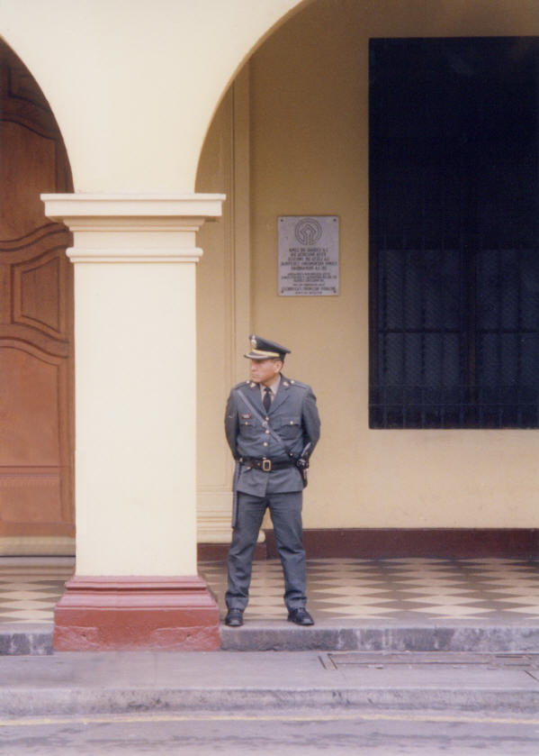 Part of the extensive tiling in the cloister of the large and opulent Franciscan monastary in Lima. The tiles were a gift from the people of Seville in, as you can see, 1620.